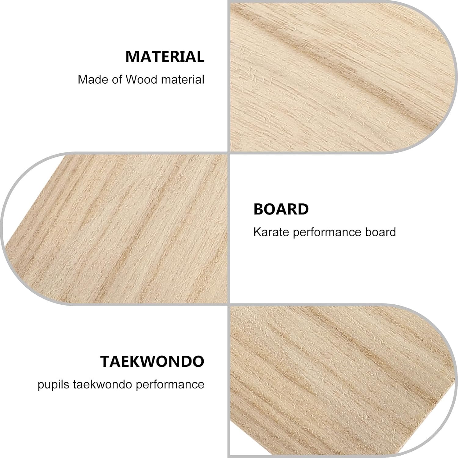 Package Include 10 x Boards Characteristics -Material: Wood -Product Info: -Color: Khaki -Note: It come with two sizes. - Size: 30.00X20.00X0.30cm/11.79X7.86X0.12in -It will not hurt and can be the good helper to practicing or performing Karate Tool. -The are sturdy, the cutting technology is , and each board is . -Made of wood material, this taekwondo board can be the good helper for . -The sound of the board breaking when the performance was broken was clear karate pads. -This versatile board is very suitable for in the primary school or kindergarten sparring gear equipment.Goods Informationtaekwondo brick These composite boards are an inexpensive way to train beginners and .taekwondo kick wood This versatile taekwondo board is made of wood material.taekwondo training equipment Taekwondo board is a common way to gain confidence, skill and power