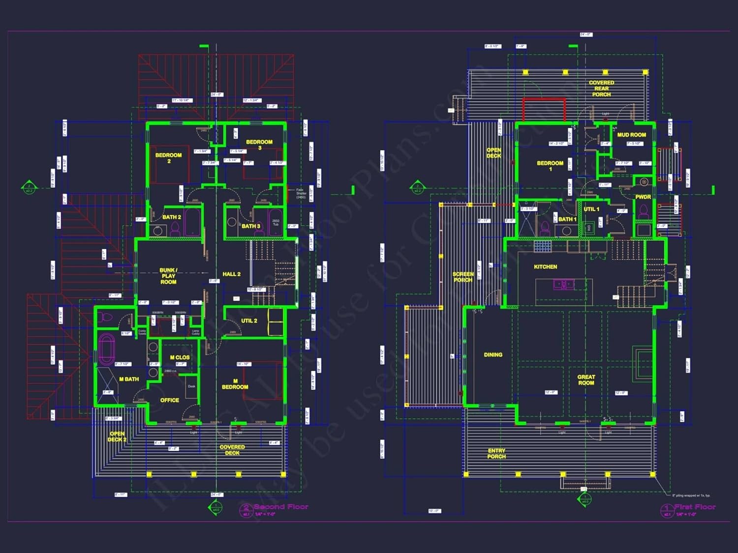 Coastal Cottage House Plan with Farmhouse CharmDiscover this 3,964 sq. ft. Coastal Cottage house plan with 6 bedrooms, 5+ baths, wraparound porches, and flexible CAD blueprints—perfect for relaxed Southern living.This coastal cottage house plan captures timeless charm with modern livability. Featuring a wraparound porch, large windows, and a flexible open-concept design, it's an ideal plan for coastal, suburban, or Southern-style communities.Key Features of the Home PlanLiving Areas - Heated & UnheatedHeated area: 3,964 sq. ft. of finished space designed for functionality and charm.Unheated extras: Covered wraparound porch, second-story balcony, outdoor patio, and a 2-car garage with storage options.Bedrooms & Bathrooms6 bedrooms, including a first-floor Owner's Suite with direct porch access.5+ bathrooms, designed for convenience with guest powder rooms and private ensuite layouts.Interior HighlightsOpen floor plan connects the great room, dining area, and kitchen for family gatherings. Browse open floor plans.Large kitchen island and walk-in pantry provide cooking efficiency. See kitchen island designs.Vaulted ceilings and abundant windows create bright, welcoming interiors.Dedicated study and recreation room offer flexible work and play spaces.Multiple fireplaces for cozy Southern evenings. Explore fireplace plans.Garage & Storage DetailsGarage Bays: 2-car garage with oversized doors and optional storage space.Garage Type: Attached with side or front entry options to suit different lots.Storage: Mudroom, multiple closets, and built-ins throughout.Outdoor Living FeaturesExpansive wraparound porch for entertaining and relaxation.Second-story balcony for enjoying morning coffee or evening sunsets.Traditional siding exterior with wood accents and farmhouse-style railing.Architectural Style: Coastal CottageThis plan
