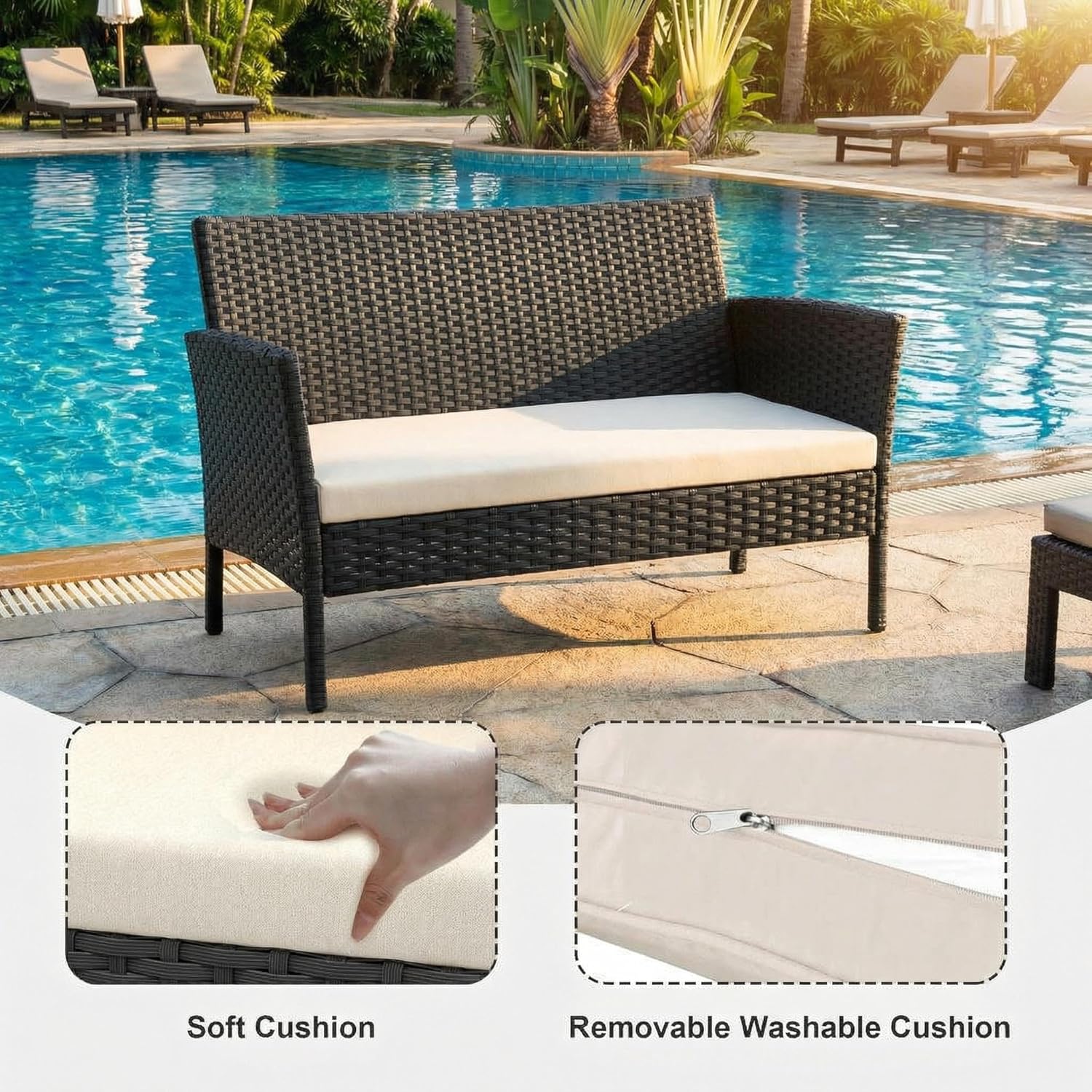 | Color | Black, Beige Cushion |