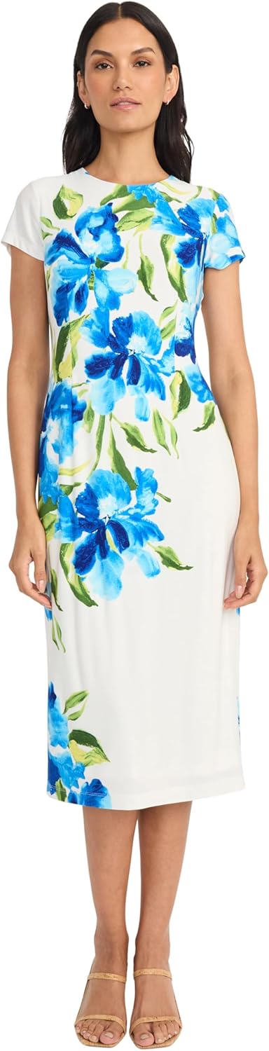 | Style Name | Women's Stretch Midi Sheath Dress With Cap Sleeves - Crew Neck - Wedding Guest Dress |