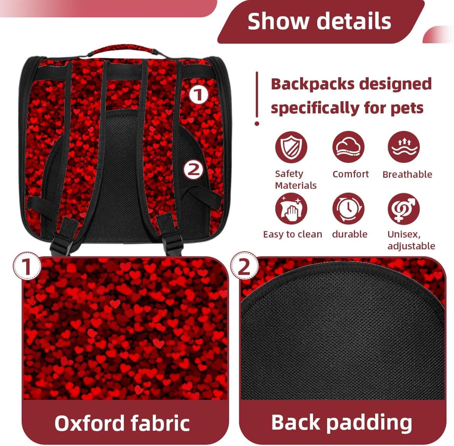 Well made: Cat Backpack Carrier is made from 900D oxford fabric, pp webbing, velvet, nylon, which is very sturdy, environmentally friendly and breathable. Not easily scratched by pet’s claws, pet backpack carrier is SAFETY & ANTI-SCRATCH. The back padding will give you a comfortable and breathable experience. Ventilated Backpack: With a breathable window in the front, this pet backpack allows cats to enjoy the sun without feeling stuffy. There are two side pockets and one big front pocket, and you can take foods or toy for your kitten pet. It is big enough for cat to turn around, and there are side pockets and hook holes, you will enjoy the greatest convenience when taking your cat out. Perfect size: Cat carrier is 15.75x9.84x13.78in/40x25x35cm. Fits most small/medium sized cat, dog, and pet. Quality fleece bed provide a comfortable place for your pet. Lightweight and easy to carry to all places. Built-in harnesses keep your naughty friends from escaping. Removable cosy mat for easier cleaning and let your pet enjoy it inside. Easy to carry: The adjustable shoulder strap of pet carrier bag help you hands-free carrying and makes it the most safe and convenient pet carrier bag for your travel. Seat belt design provide pets with safety protection throughout the trip. Pad protection keep your pets comfortable during travel. Unique Design: Innovative inside graphic design gives you a stereoscopic 3D visual experience. You also send us the photos you interest to make your unique dog or cat carrier. Pet bag is also a amazing gift for pet lover.
