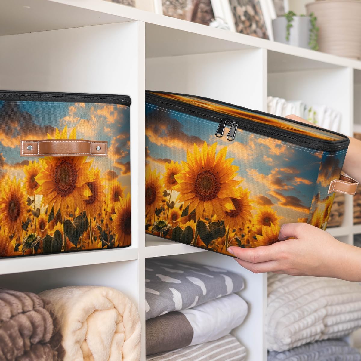 Storage Bins Size: 15(L)x 11(W)x 9.5(H)inches. Large capacity storage basket, can hold a lot of things, save space, also can prevent things messy, keep the home and room clean and orderly. Multi-function: Foldable storage box can be used as closet organizers, toy storage, shelf basket, blanket basket, storage box, laundry basket, wardrobe basket, clothes storage bins, bathroom baskets, under bed storage containers and so on. Can store toys, blankets, books, clothes, quilts, socks, shoes, all kinds of items, can be put anywhere you want. Various Occasions: Storage boxes are suitable for closet, shelf, bedroom, closet, kid's room, bathroom, nursery, laundry room, living room, dormitory, apartment, office, locker room, pantry, balcony, living room, kitchen, game room and other occasions. Practical Gifts: The clothes organizer is a thoughtful choice for birthday parties or Christmas, Mother's Day, Father's Day, Valentine's Day, Easter, etc., for mom, dad, him or her, friends or colleagues.