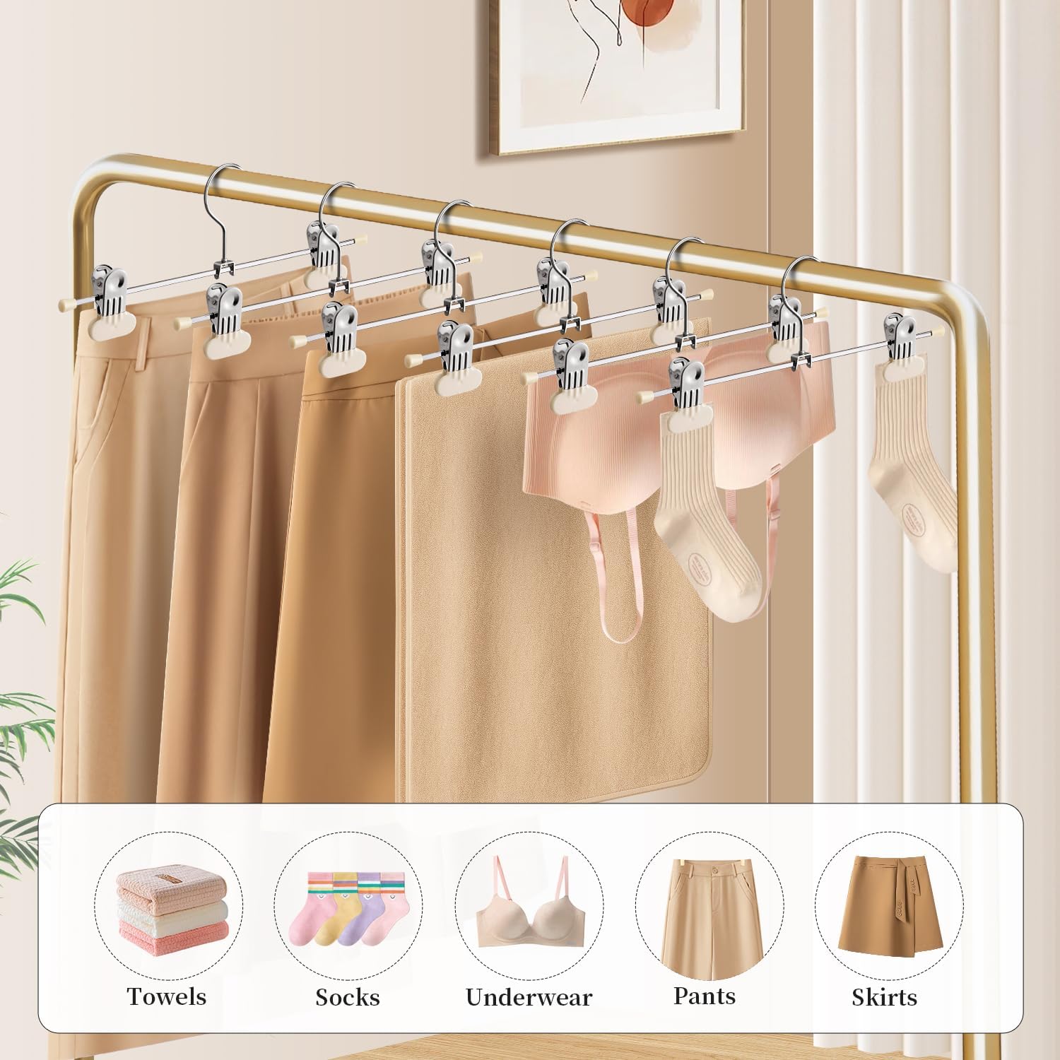 12Inch 30Pack And 14Inch 30Pack Pants Hangers with Wide Clips Adjustable Skirt Hangers for Women Non-Slip Clothes Hanger for Pants Heavy Duty Space Saving Trousers Hanger for Jeans,Shorts Ivory