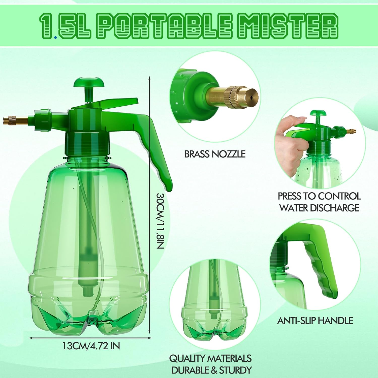 Features: Designed with precision, these water mister spray bottles bring adequate misting, providing mist that your plants need. The spray mechanism is not only effective but also efficient, reducing water waste while making your plants get the sufficient water they need. Enjoy the satisfaction of maintaining healthy, thriving greenery with ease. Form meets function in this product, relish in the functionality of these water mister spray bottles and sleeves while appreciating its aesthetic appeal. The vibrant blue uplifts your atmosphere and bring cheer to your daily watering task. It's not just about practicality, but also about style. Specifications: Material: Water mister spray bottles: PET plastic Bottle sleeves: neoprene Color: green Size (about): Water mister spray bottles: 4.72 x 11.8 inches/ 12 x 30 cm and 0.34 gallon/ 1.5 L in capacity Bottle sleeves: 14.17 inches/ 36 cm of bottom circumference, 7.48 inches/ 19 cm high and minimum caliber is 6.3 inches/ 16 cm Package includes: 2 x Water mister spray bottles 2 x Bottle sleeves Notes: Manual measurement, please allow slight errors on size. The color may exist a slight difference due to different screen displays