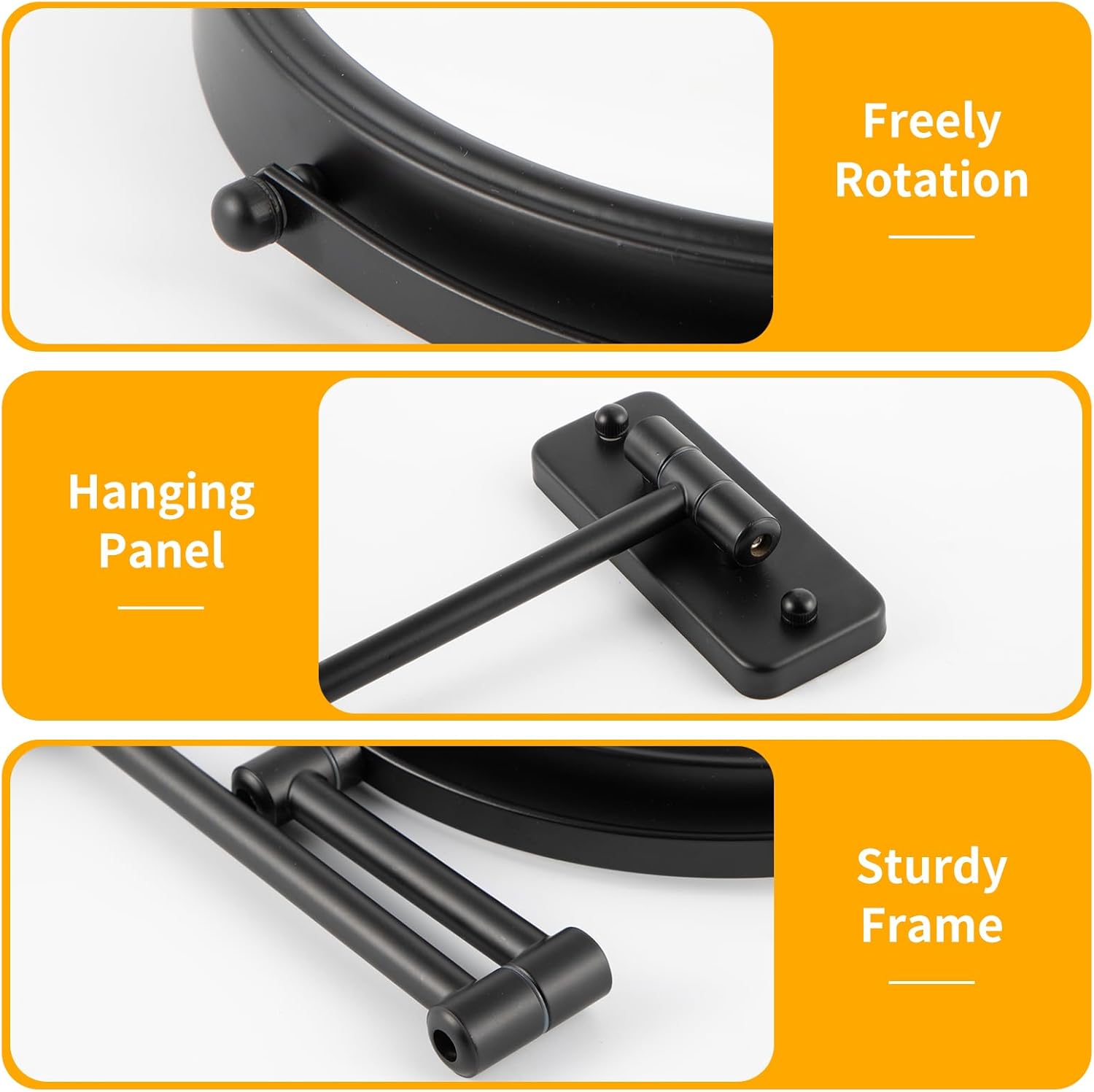 9 Inch Wall Mounted Makeup Vanity Mirror - Double Sided 1X/10X Magnifying Bathroom Mirror,360° Swivel Extendable Bathroom Mirror for Shaving