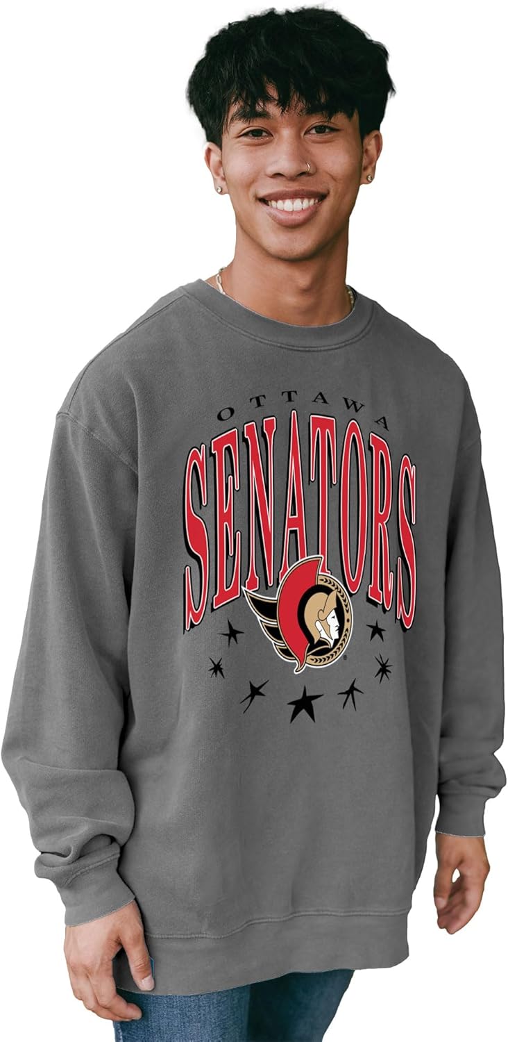 Proudly display your team pride with this NHL dyed ringspun sweatshirt. It's durability will ensure a long lifetime of cheering on your favorite team. The high-quality graphics make for an extraordinary looking crewneck sweatshirt