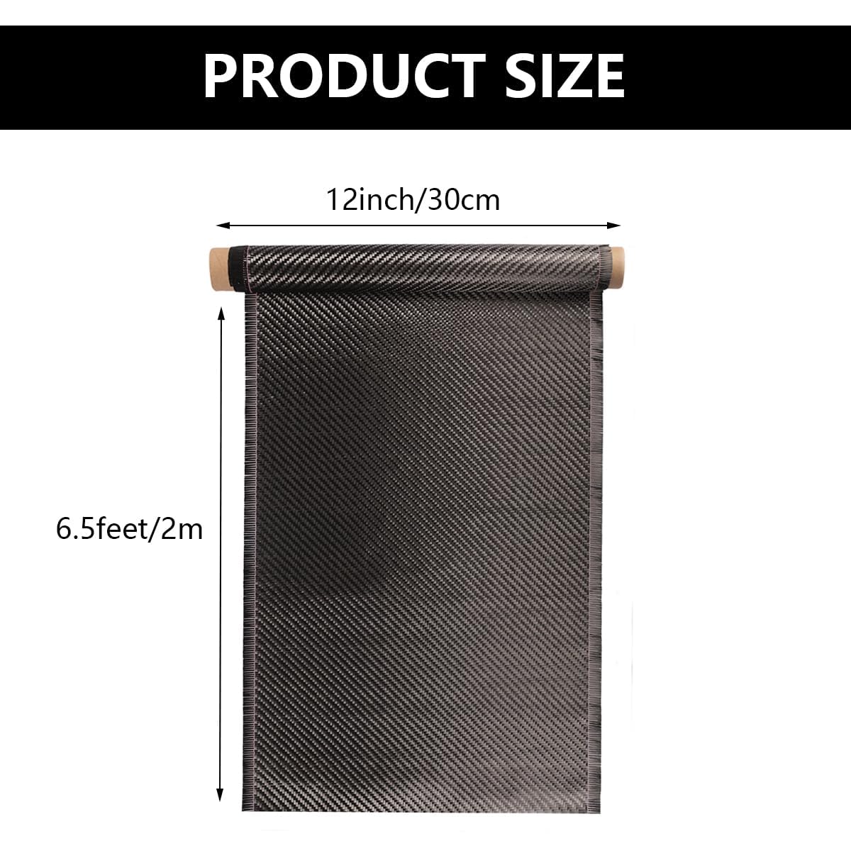 Carbon Fiber Fabric Roll 6.5ft x 12”Fabric Mesh Carbon Fiber Cloth 12k/400g Plain Weave Carbon Fiber Sheet Pure Fabric Roll for Cars for Structural Reinforcement on Concrete Walls, Basements, Boats DIY Projects