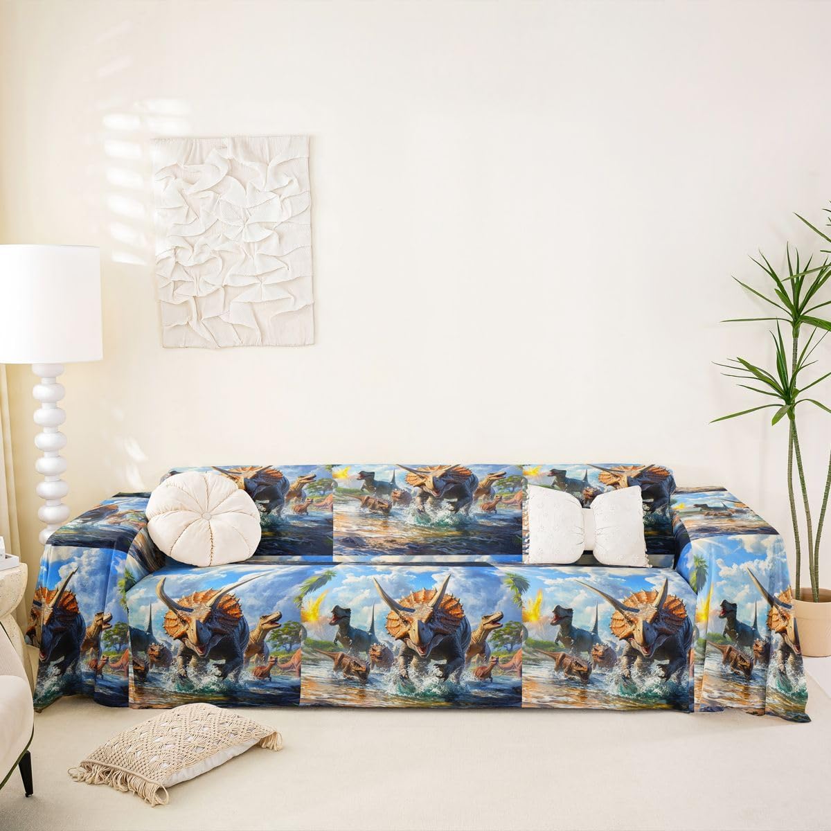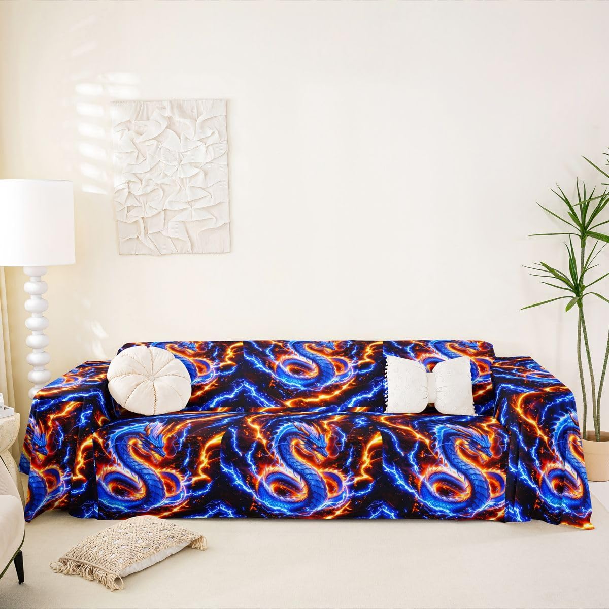 Sofa Cover Style and Protection for Your Home The couch cover combines comfort, style, and practicality. Made from soft plush Microfiber fabric and featuring modern 3D digital prints, it refreshes living spaces while providing reliable furniture protection. Multiple Size Options Several sizes are available to ensure a proper fit for most sofas, loveseats, and sectional couches. Refer to the size chart and measure furniture before ordering.71"x91",71"x102" for single or small loveseat; 71"x 118 ", 91"x 118 "for loveseat or small 3 seat sofa; 71 "x 134", 91"x 134"for 3 seat or small 4 seat sofa; 71 "x 150", 91"x 150"for oversized sofa. Product Features Soft Plush Material and 3D Designs.The short plush fabric offers a soft and durable surface. 3D digital printing technology provides a range of themed patterns, adding a vibrant and personalized touch to any room. Scratch and Spill Protection Ideal for homes with pets and children, this cover helps shield sofas from scratches, spills, dust, and everyday wear. It serves as a functional yet stylish layer that preserves furniture condition. Full Coverage and Non Slip Design Designed to cover the entire sofa, including the back, seat, and arms, this drape-style cover installs quickly. The non slip backing helps keep it securely in place during use. Application For indoor sofas, outdoor camping, picnics, beach trips, or as a bed blanket. Easy Maintenance Machine washable at low temperatures, the cover resists shrinking and fading. For best results, wash gently, avoid bleach and ironing, and allow it to air dry. Note Slight color differences may occur between production lots.