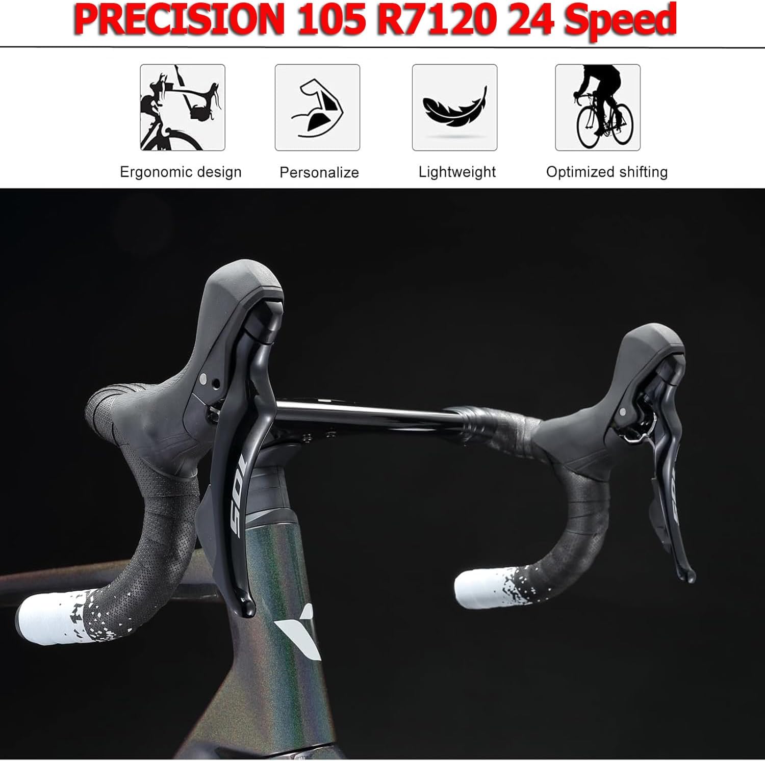 • 【PRECISION 105 R7120 24 SPEED SHIFTING】This Disc Brake road bicycle with 105 R7120 2*12 Speeds Shifter lever, 105 R7100 Front derailleur / rear derailleur and crankset; Professional transmission enables you to start and operate your ride effectively, smooth shifting and durable.