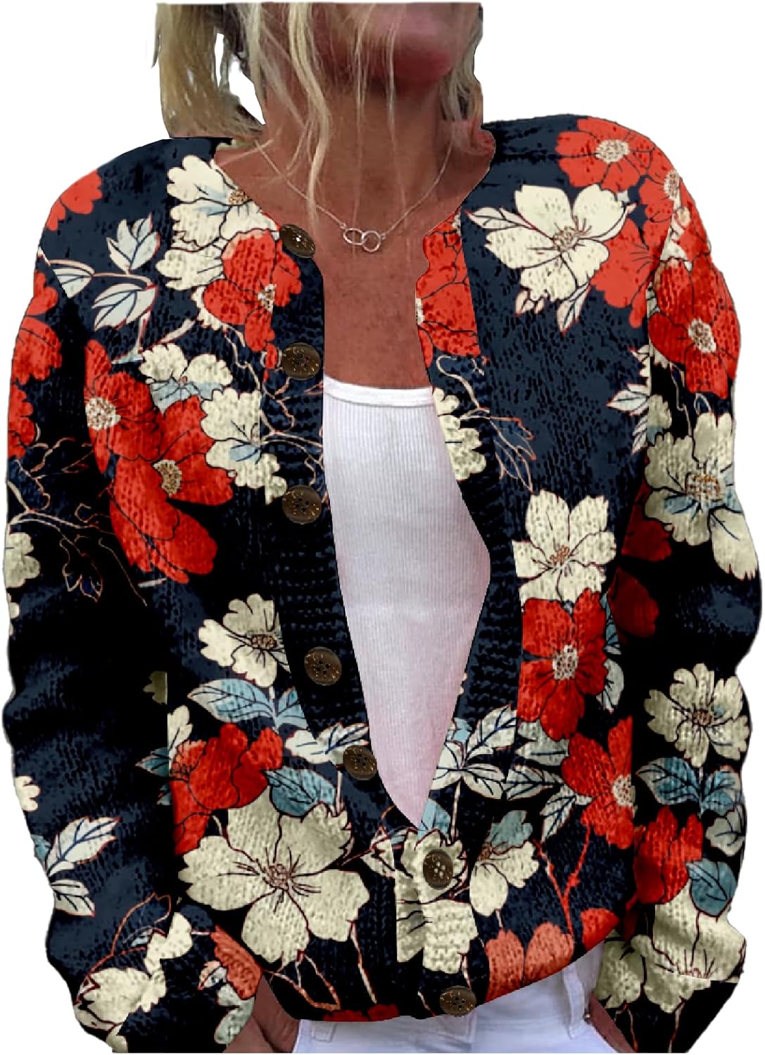 MARSVOVO Women Floral Sweaters Button Down Cropped Cardigans Long Sleeve Lightweight Loose Fit Sweater Top Fall Winter
