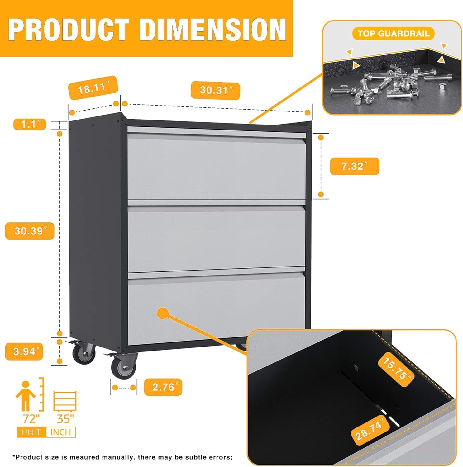 | Size | 3 Drawer 18.11"D x 30.31"W x 35.43"H |